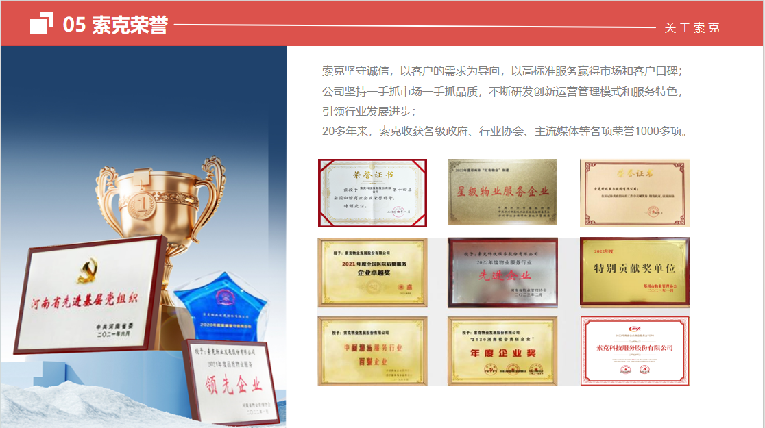 *2021年荣获河南省物业管理协会“2020年度物业服务行业诚信企业”。